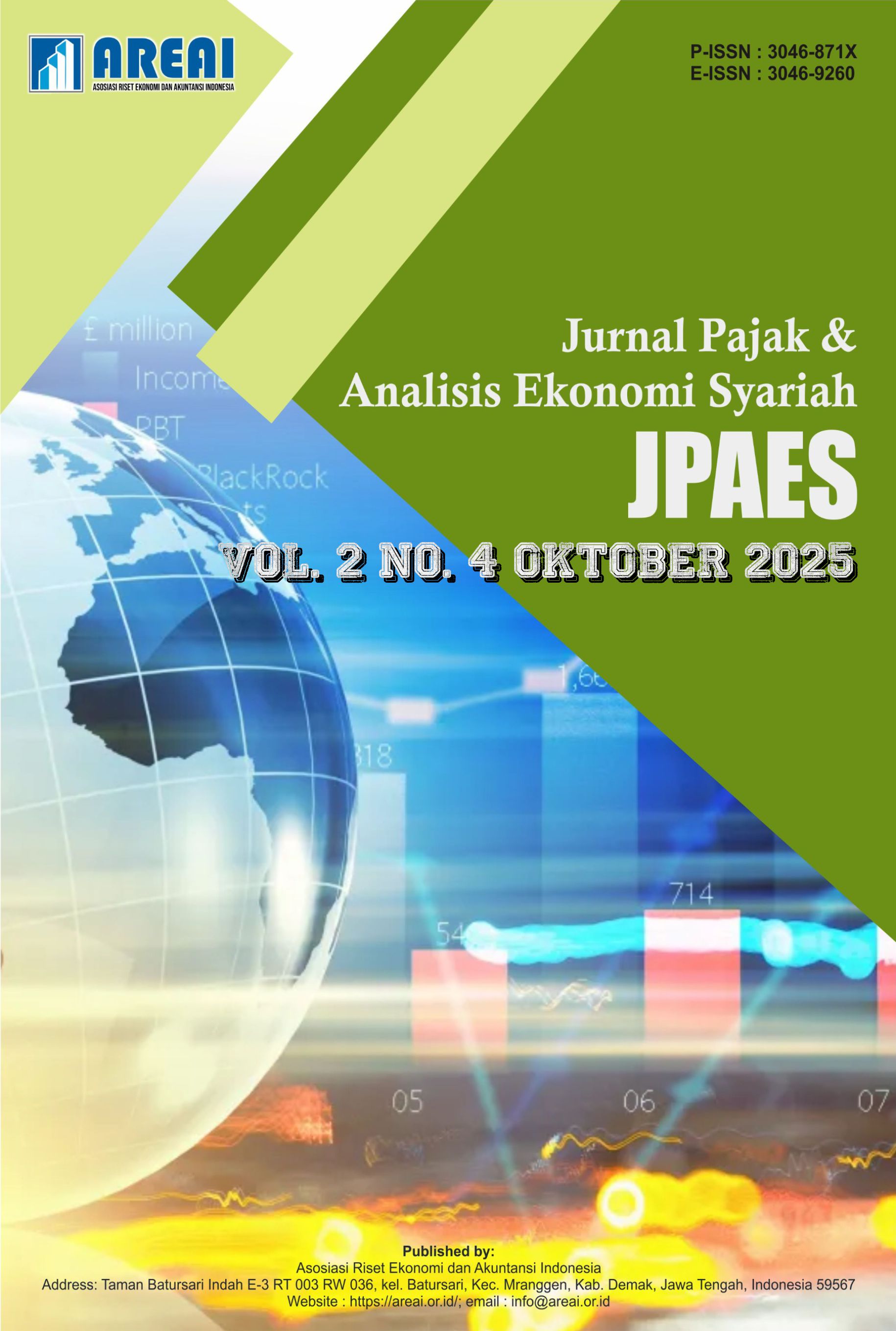 Jurnal Pajak dan Analisis Ekonomi Syariah (JPAES) Dengan e-ISSN : 3046-9260, p-ISSN : 3046-871X merupakan jurnal yang dikhususkan untuk publikasi artikel ilmiah yang diterbitkan oleh Asosiasi Riset Ekonomi dan Akuntansi Indonesia. Jurnal ini terbit 4 kali dalam setahun yaitu pada bulan Januari, April, Juli, dan Oktober. Misi Jurnal Pajak dan Analisis Ekonomi Syariah (JPAES) adalah untuk mendiseminasikan, mengembangkan dan memfasilitasi hasil-hasil penelitian Ilmu Ekonomi,Ilmu Perpajakan dan Akuntansi, sebagai wadah bagi para dosen, guru, peneliti dan praktisi di bidang Ekonomi dan Manajemen dari seluruh Indonesia, dalam melakukan pertukaran informasi mengenai hasil penelitian terbaru yang telah dilakukan.