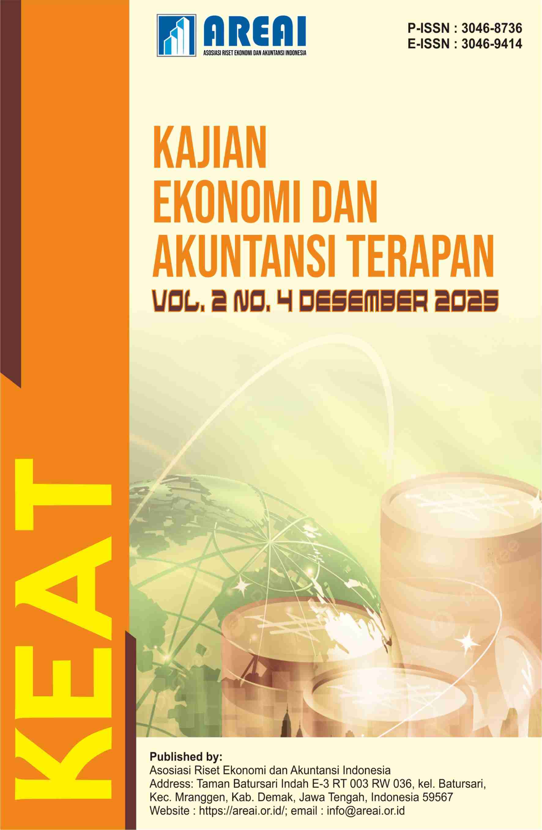 Kajian Ekonomi dan Akuntansi Terapan (KEAT) Dengan e-ISSN : 3046-9414, p-ISSN : 3046-8736 merupakan jurnal yang dikhususkan untuk publikasi artikel ilmiah yang diterbitkan oleh Asosiasi Riset Ekonomi dan Akuntansi Indonesia. Jurnal ini terbit 4 kali dalam setahun yaitu pada bulan Maret, Juni, September, dan Desember. Misi Kajian Ekonomi dan Akuntansi Terapan (KEAT) adalah untuk mendiseminasikan, mengembangkan dan memfasilitasi hasil-hasil penelitian Ilmu Ekonomi,Ilmu Perpajakan dan Akuntansi, sebagai wadah bagi para dosen, guru, peneliti dan praktisi di bidang Ekonomi dan Manajemen dari seluruh Indonesia, dalam melakukan pertukaran informasi mengenai hasil penelitian terbaru yang telah dilakukan.